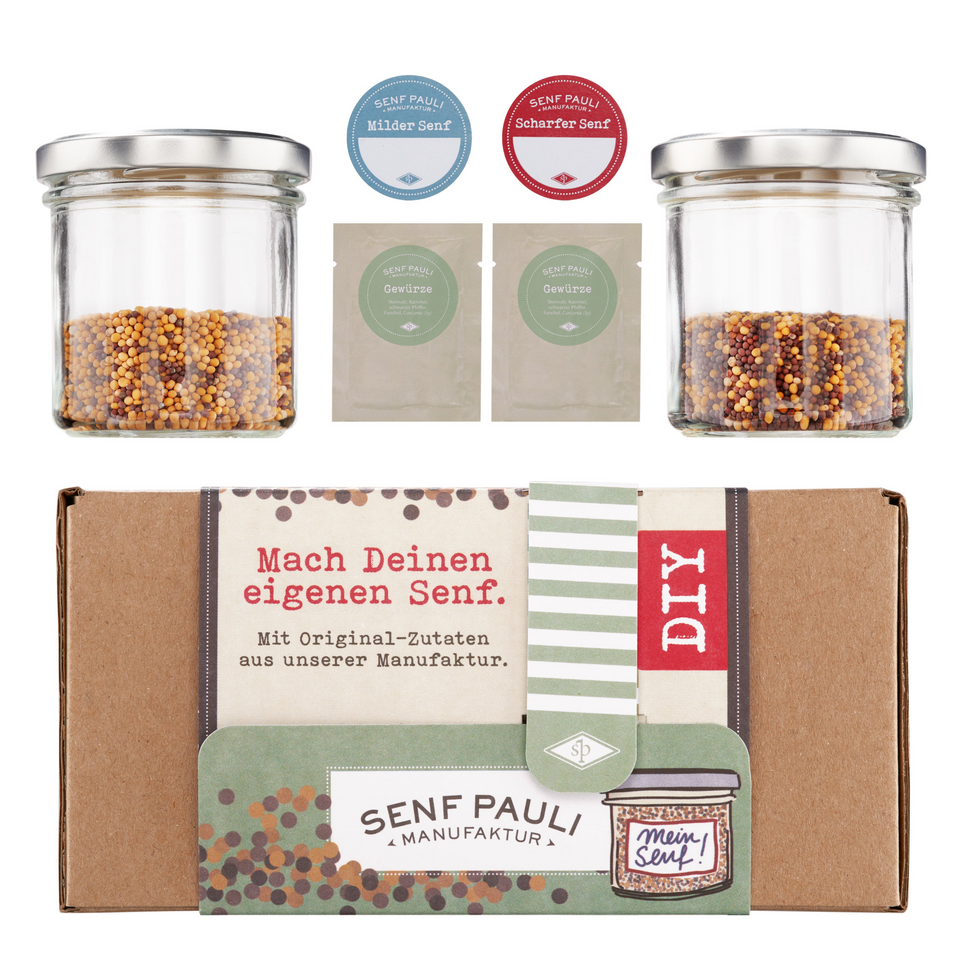 Mit unserem DIY-Senf-Kit entsteht eigener Senf aus Zutaten unserer Hamburger Manufaktur auf St. Pauli – regional, nachhaltig und ohne Schietkram.