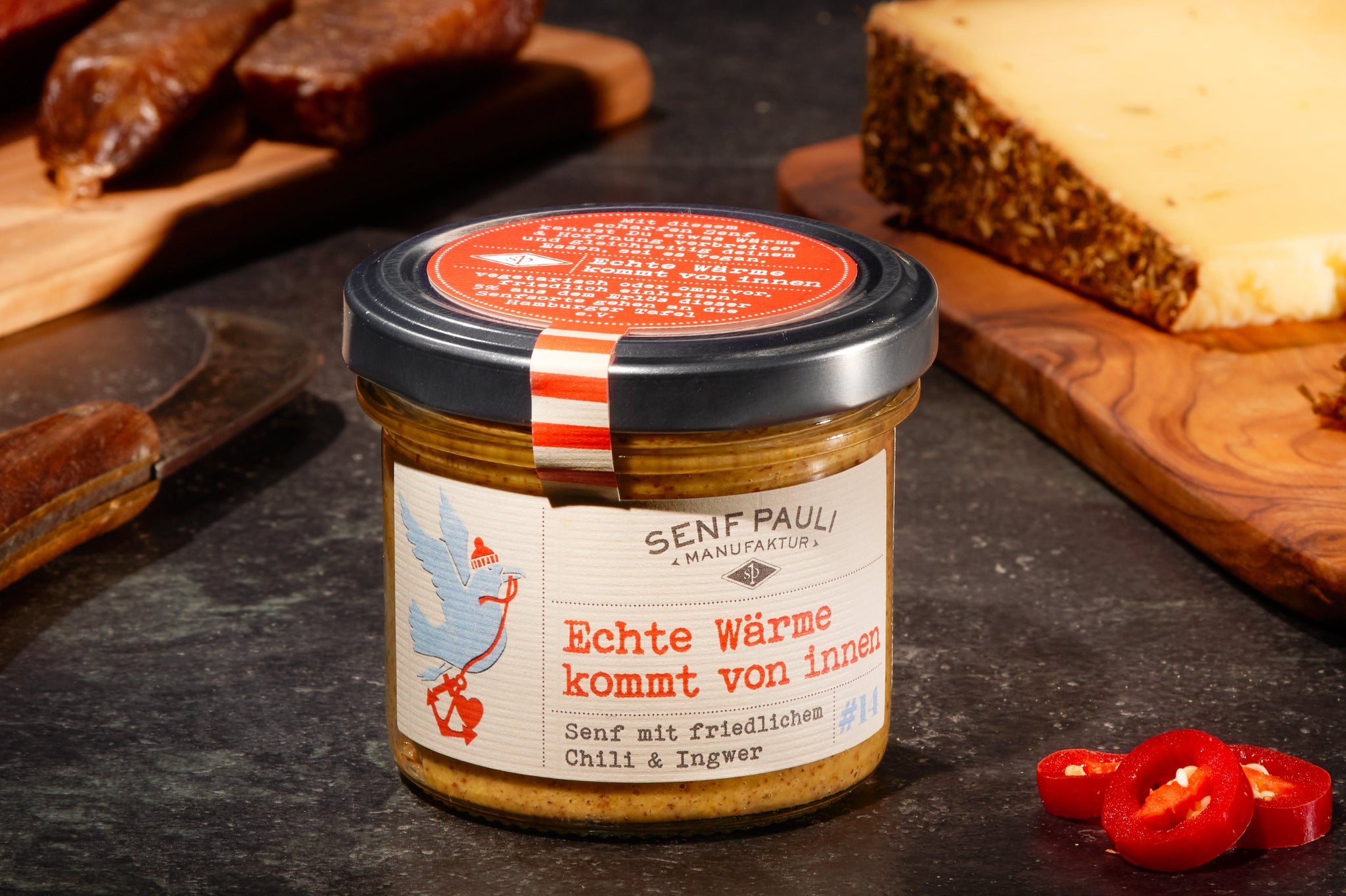 Echte Wärme kommt von innen: Senf mit friedlichem Chili & Ingwer Artikelnummer: 118-1E